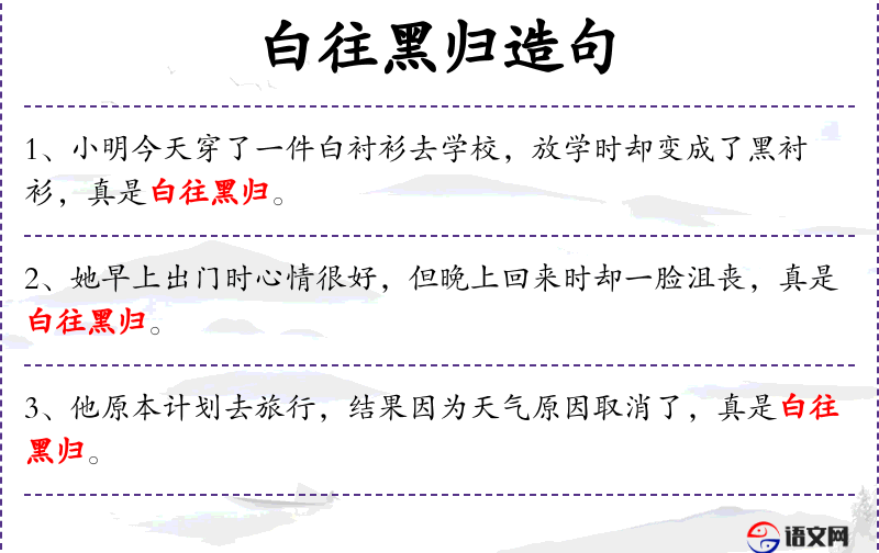 1. 【白往黑归】 - 比喻只看表面不看本质。