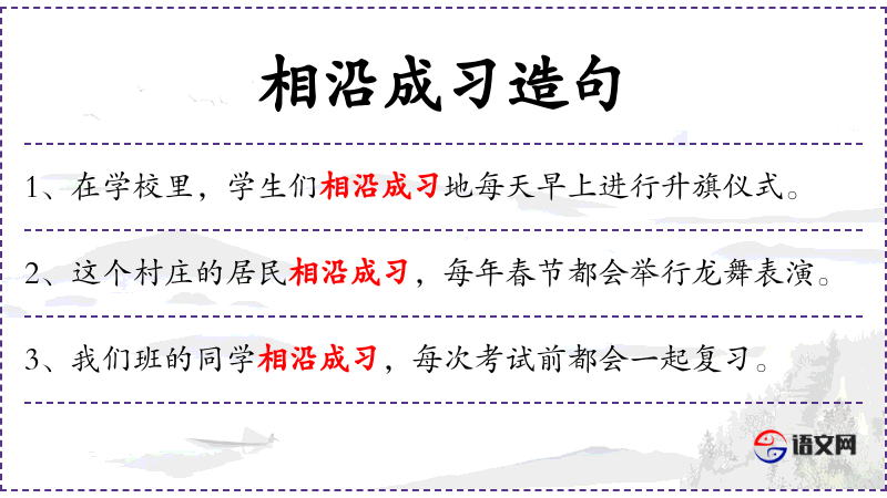 1. 【相沿成习】 - 依照相传下来的一套慢慢地成了习惯。