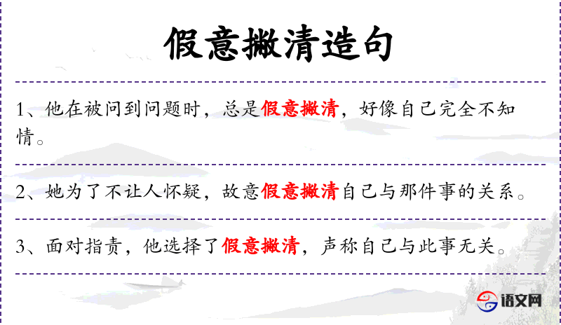 - 假意撇清:表面上装作无辜或清白,实际上有其他意图。