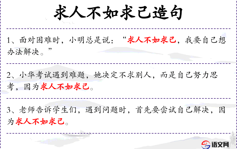 1. 【求人不如求己】 仰求别人,不如自己努力。