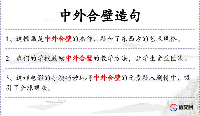 句子中的“中外合壁”可能蕴含了文化交流和融合的意义,反映了当代社会对多元文化的接受和推崇。了解相关的成语、典故或历史背景可以更深入地理解这种表达的文化内涵。