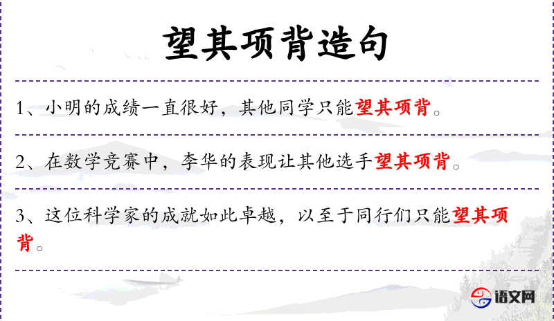 1. 【望其项背】 - 项:颈的后部。望见他的颈项和后背。比喻赶得上。