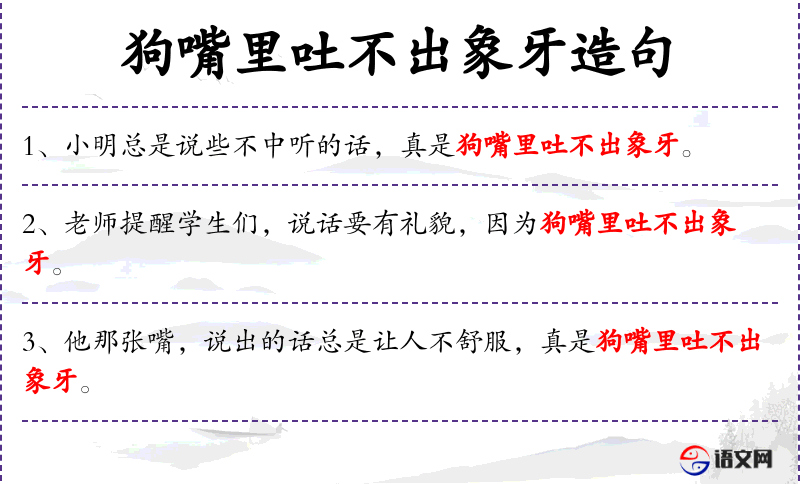 2. 【狗嘴里吐不出象牙】 比喻坏人嘴里说不出好话来。