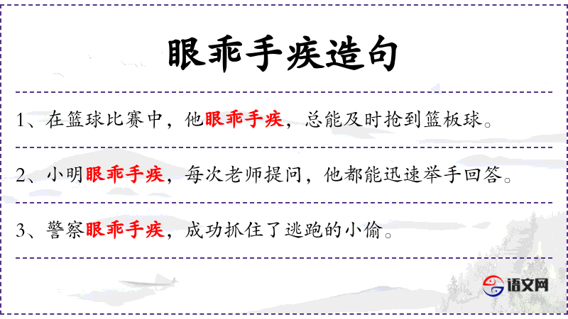 2. 【眼乖手疾】 - 眼睛明亮,手脚利落。形容看得准,动作敏捷。