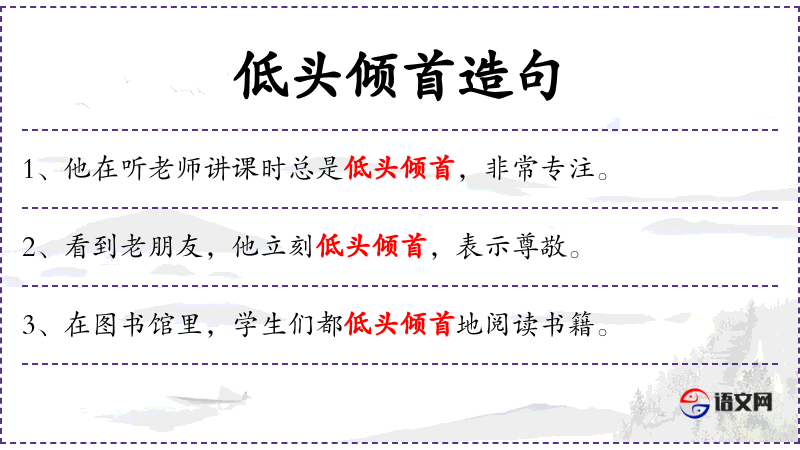 - 谓语:总是低头倾首,默默承受
