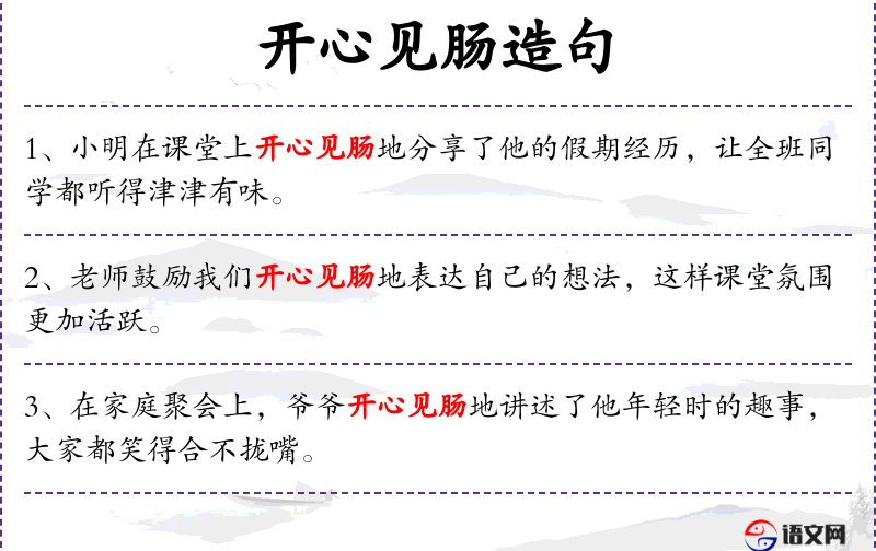 “开心见肠”是一个比喻,源自**传统文化,强调真诚和坦率。这句话体现了中文表达中常用的比喻和成语。