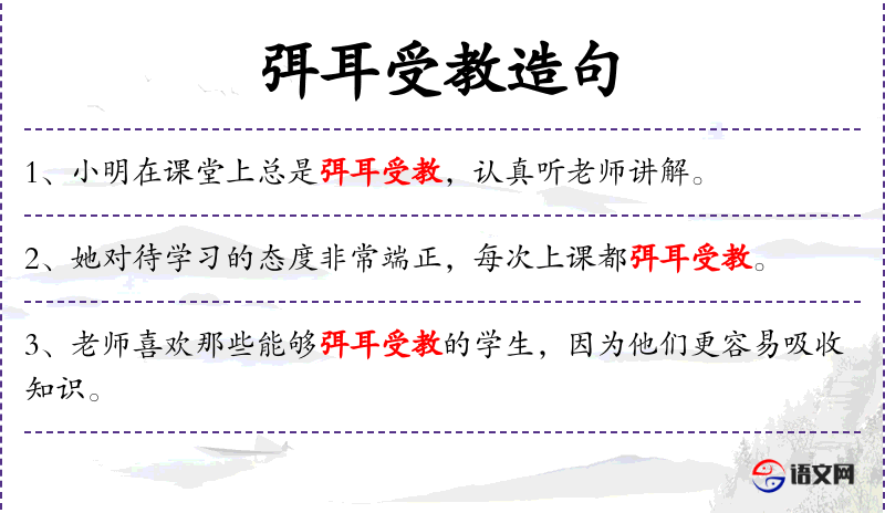 句子:“小明在课堂上总是弭耳受教,认真听老师讲解。”
