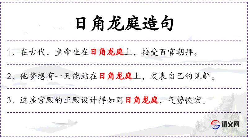 “日角龙庭”可能与古代建筑或神话有关。在文化中,龙是权力和吉祥的象征,而“日角”可能指的是某种特定的建筑细节或装饰。了解这一背景可以更深入地理解句子的文化内涵。