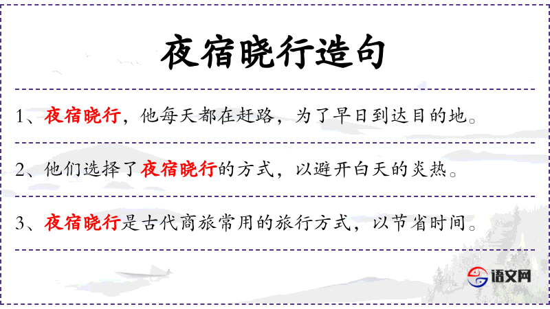 句子:“夜宿晓行虽然辛苦,但能让他们在预定时间内到达目的地。”