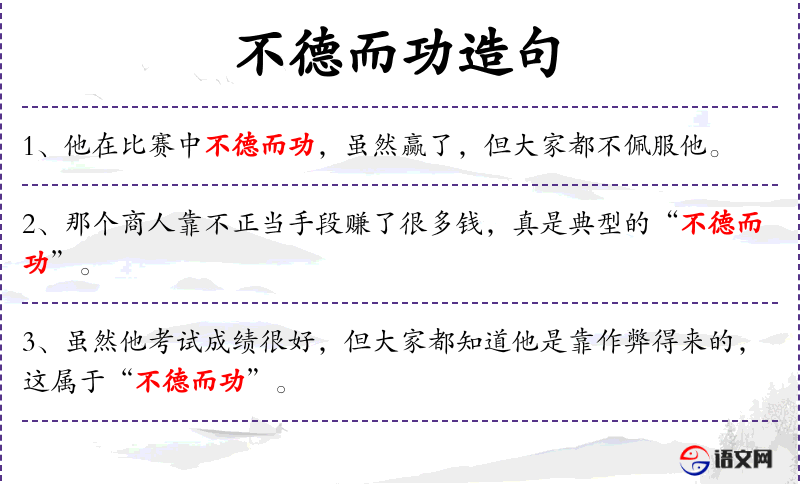 1. 【不德而功】 - 不:无;德:德行,才能。没有才能却受到奖赏。
