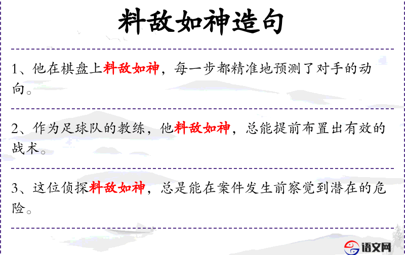 - 料敌如神:形容预测能力非常准确,如同神一般。
