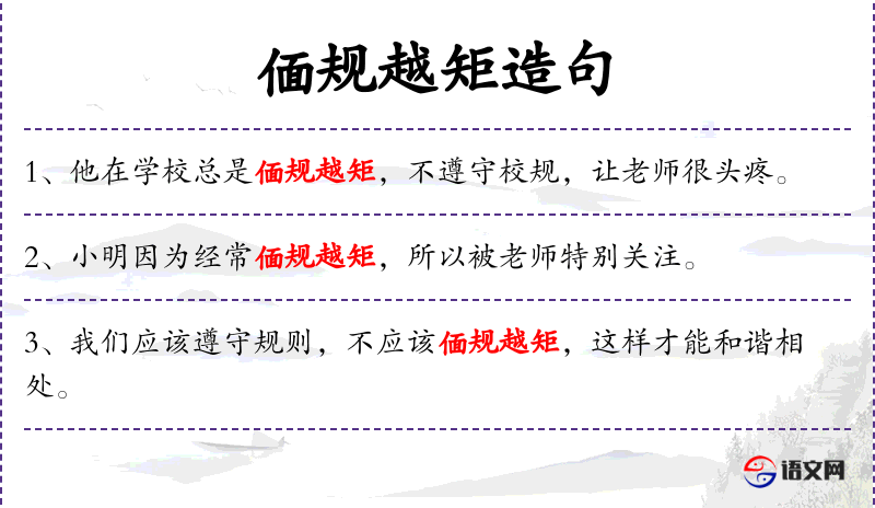 - 状语:上课时总是偭规越矩