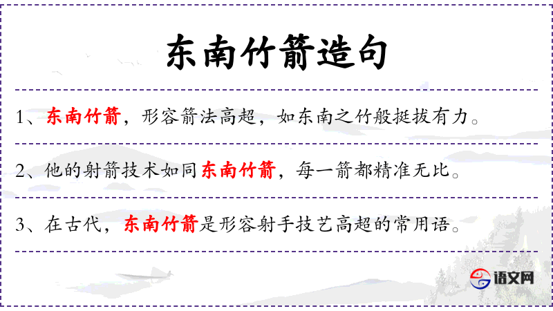句子:“东南竹箭这个词语,让人联想到古代射手的英姿。”