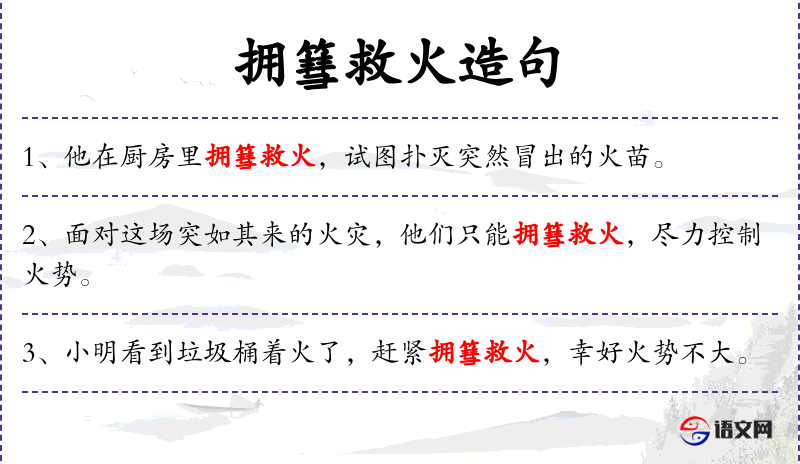 - 拥篲救火:这个表达可能反映了特定地区的救火习俗或传统方法。