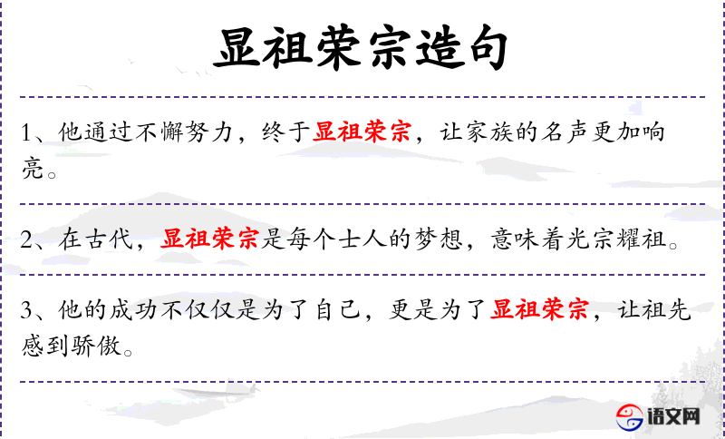 4. 【显祖荣宗】 指使祖宗的名声显耀传扬。同“显祖扬宗”。