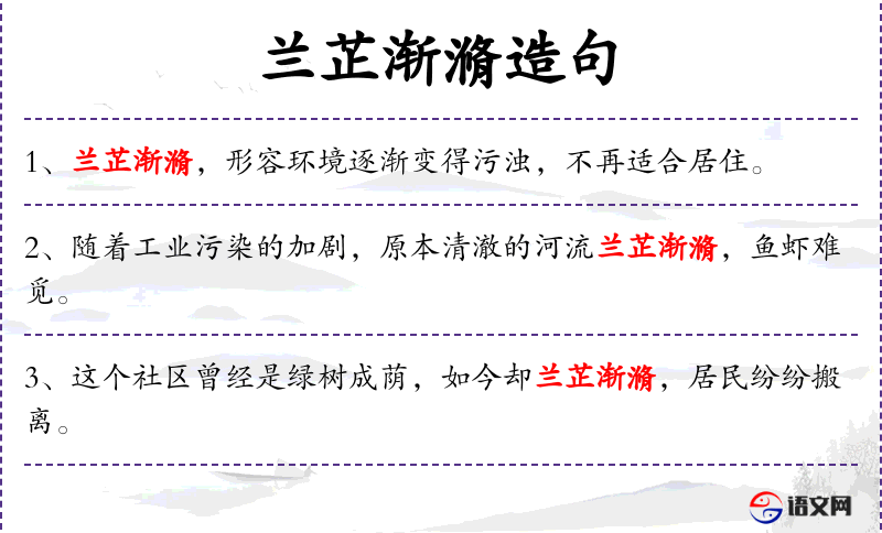 - 兰芷渐滫:形容社区现在环境恶化,兰芷(香草)逐渐凋零。