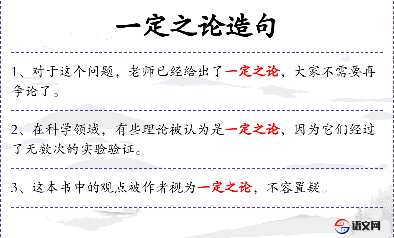 1. 【一定之论】 已经确定下来不可更改的论断。