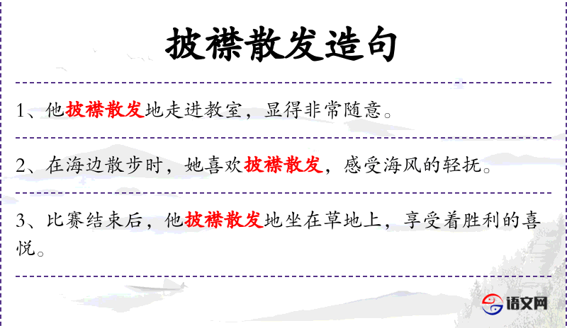- 披襟散发:形容词短语,形容一种放松、不拘束的状态。