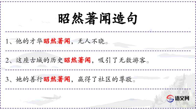3. 【昭然著闻】 - 昭然:明白的样子;著闻:众所闻知。指明明白白,大家都知道