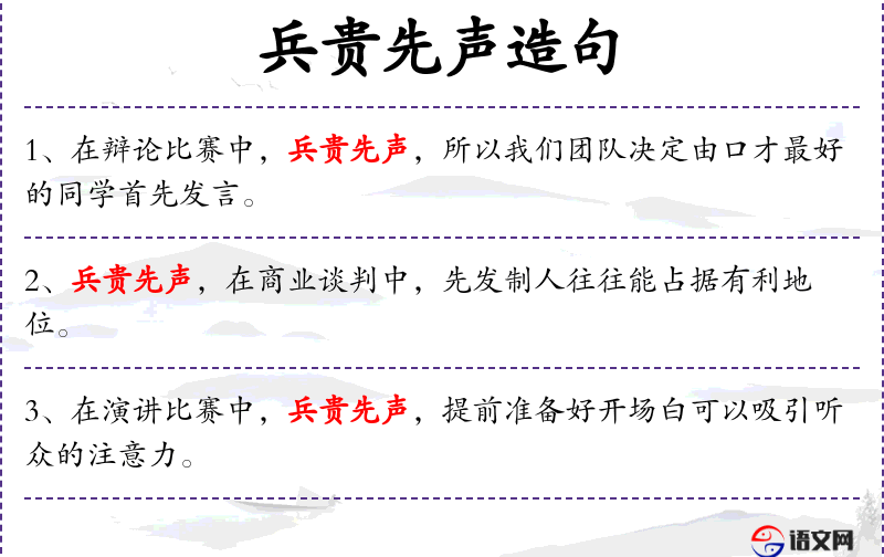 - 插入语:“兵贵先声”
