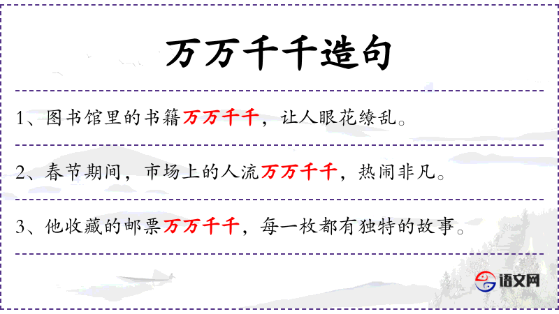 - 万万千千:形容词,形容数量非常多。