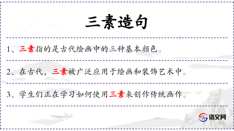 2. 【三素】 道教指三元君; 即三素云。亦泛指各色云烟。