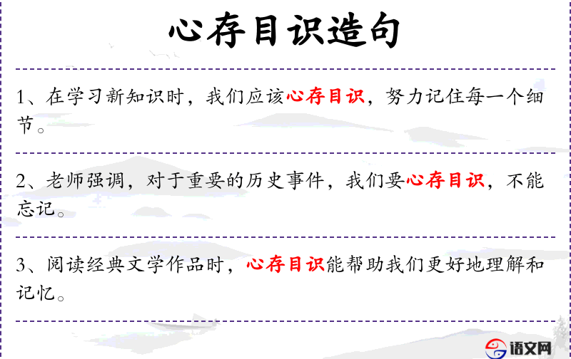 - 心存目识:指心中有记忆,目中有识别。这里指的是一种*惯,即通过记忆和识别来记住信息。