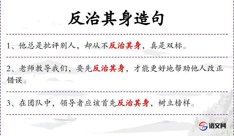 - 宾语:自己也有同样的错误、先反治其身、再提出建议