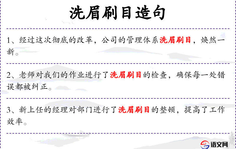 4. 【洗眉刷目】 比喻清晰明白。