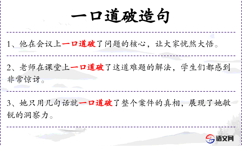 - 时态:一般过去时(假设“道破”是过去发生的动作)