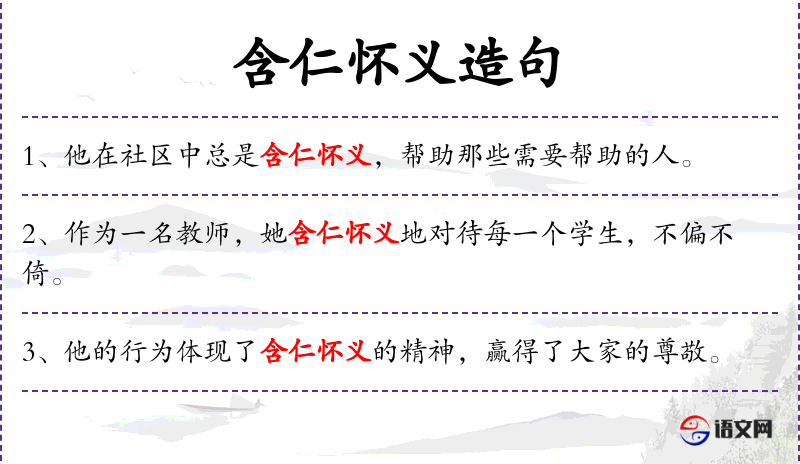 句子:“在困难时刻,他含仁怀义地伸出援手,让人感动。”