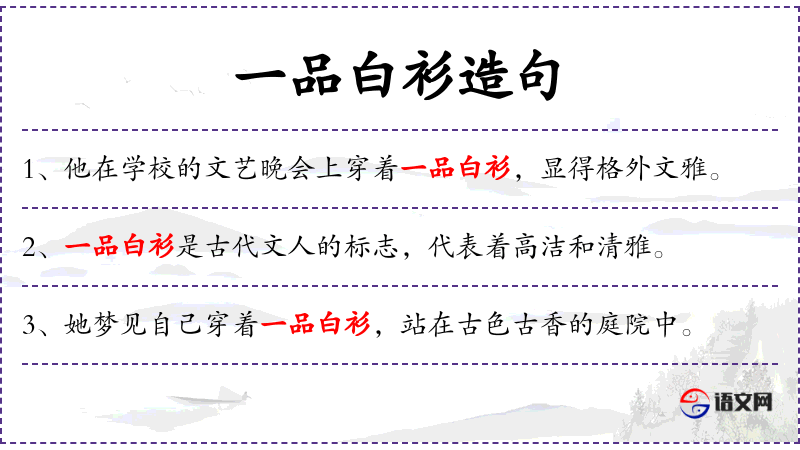 1. 【一品白衫】 - 唐人推重进士,称应进士科者为“一品白衫”。意指他日可以官登一品,但今日则犹着白衫。