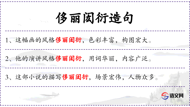 - 侈丽宏衍:形容词,意指华丽、宏大、繁复。