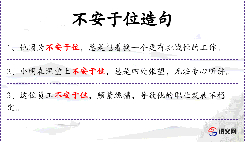 1. 【不安于位】 - 指不喜欢自己的职业,不安心工作。