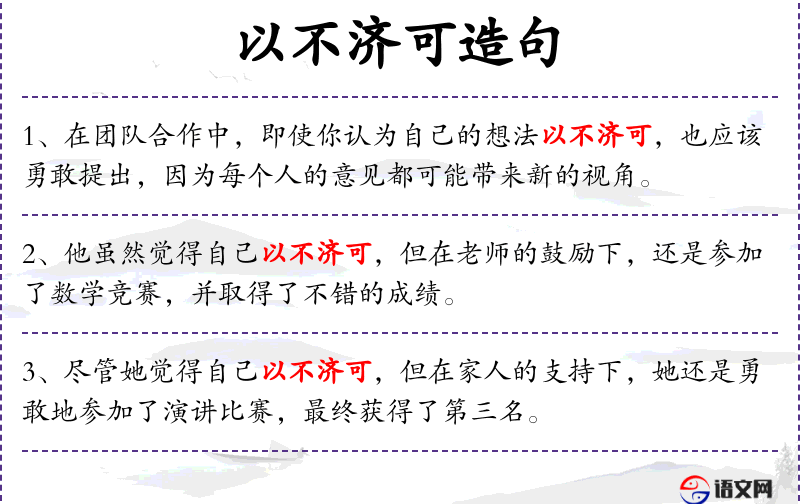 1. 【以不济可】 指用否定错误意见的办法,帮助国君走上成功之路。不,同“否”。济,成。