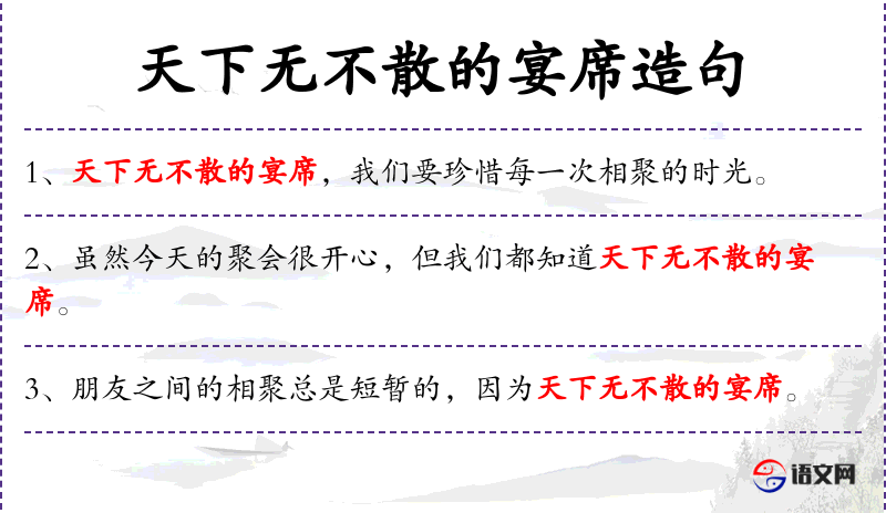 - 天下无不散的宴席:这个成语源自**传统文化,强调任何事物都有结束的时候。