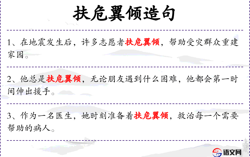 - 成语:扶危翼倾,体现了**传统文化中对帮助他人的重视。