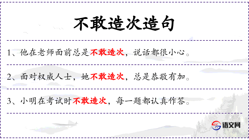 1. 【不敢造次】 - 造次:仓促、莽撞。指不敢匆忙地或鲁莽地从事。