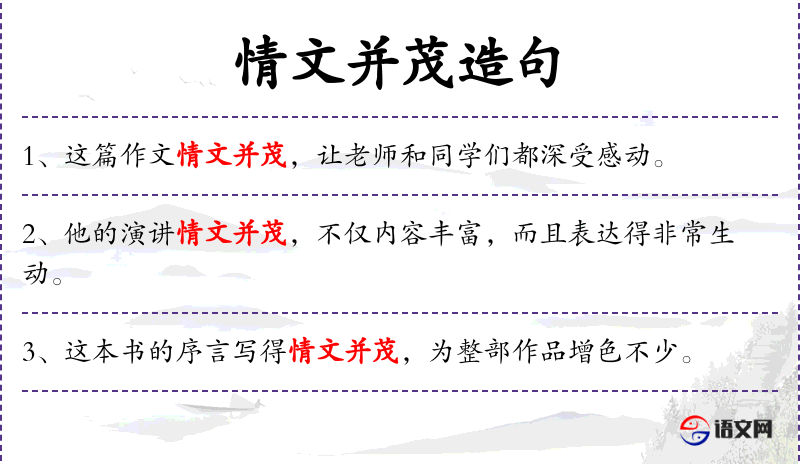- 情文并茂:形容文章情感丰富,文采斐然。