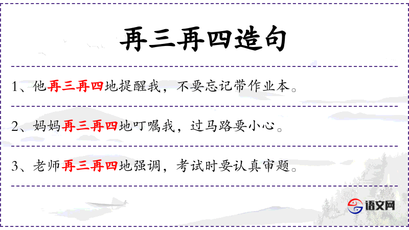 - 状语:再三再四地