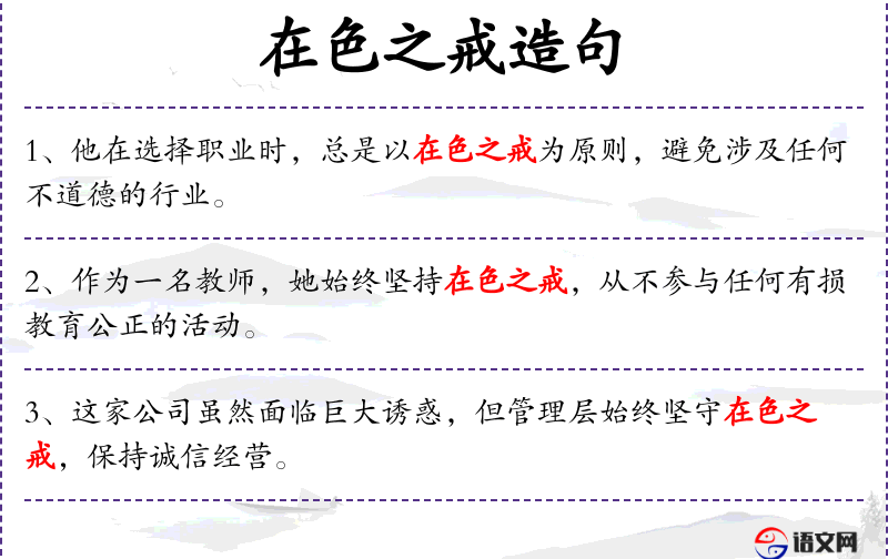 句子:“作为一名律师,他在处理案件时始终坚守在色之戒,确保为客户提供公正的法律服务。”