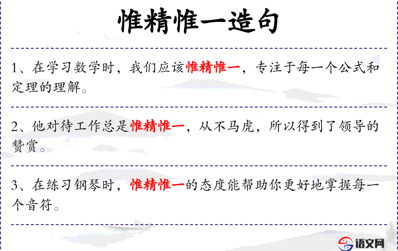 - 惟精惟一:成语,表示非常专注和细致,只做一件事并且做到最好。