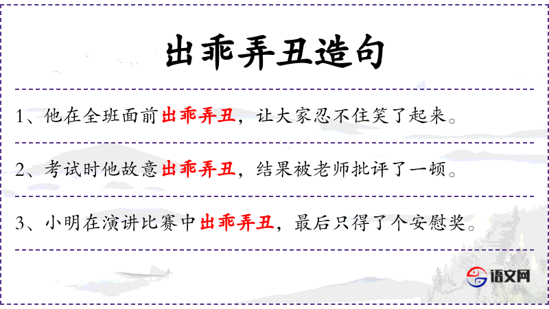 - “出乖弄丑”是一个成语,源自**传统文化,用于描述在重要场合的失误。