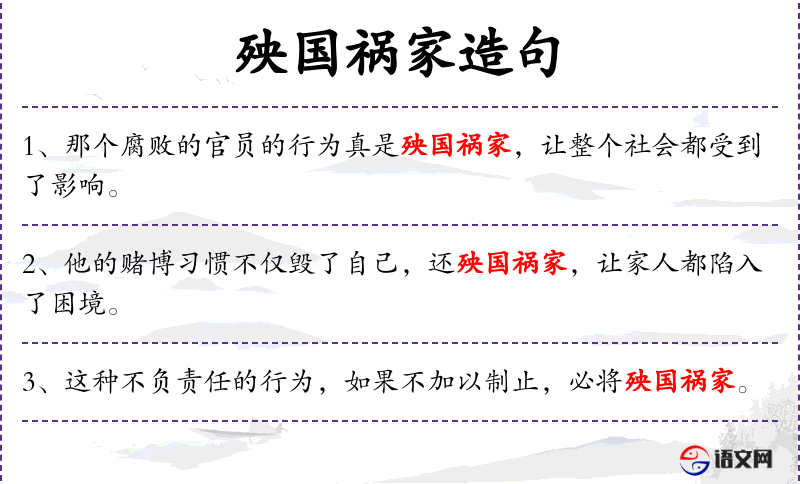 5. 【殃国祸家】 使国家遭殃,家庭受害。