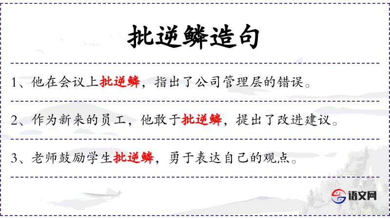 句子:“他在会议上批逆鳞,指出了公司管理层的错误。”