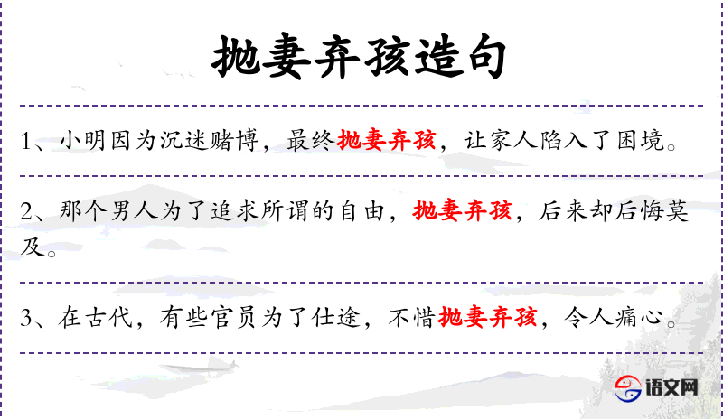 - 宾语:抛妻弃孩