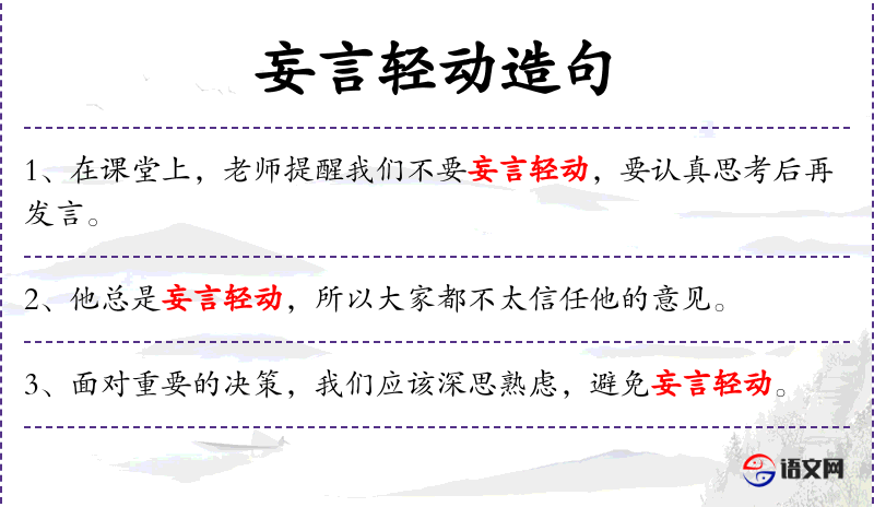 - 谓语:妄言轻动