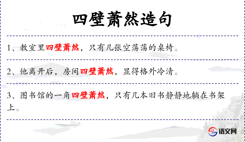 1. 【四壁萧然】 四壁:四面墙壁;萧然:寂寞冷落。屋里空荡荡的,没什么东西。形容生活非常贫困。