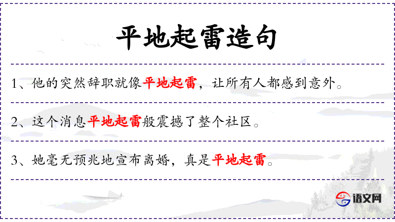 成语:平地起雷,这个成语在**文化中常用来形容突然发生的令人震惊的事情。