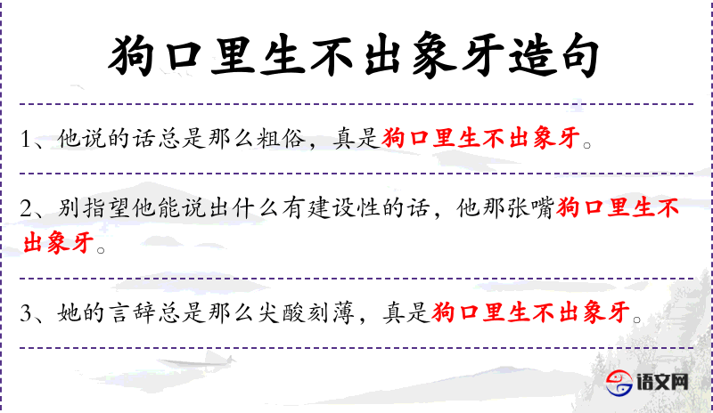 3. 【狗口里生不出象牙】 比喻坏人说不出好话。同“狗口里吐不出象牙”。